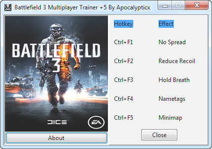 Многие давно искали рабочие читы для Battlefield 3. Данный чит ArthurGeron's BF3 Trainer+7 (Ultimate!) UPDATE 3 имеет множество функций. В том числе самые полезные - wallhack для Battlefield 3, выраженный в nametags, стрельба без отдачи оружия в Battlefield 3 (norecoil), особый прицел, карта со всеми противниками и многое другое. Чит вх для Батлфилд 3 (Battlefield 3) вы можете скачать бесплатно по ссылкам выше. Данный чит имеет хорошую защиту, благодаря чему он всегда undetected, хотя все же стоит его использовать на свой страх и риск, и не доставать других игроков, если они заметят, что вы читер.